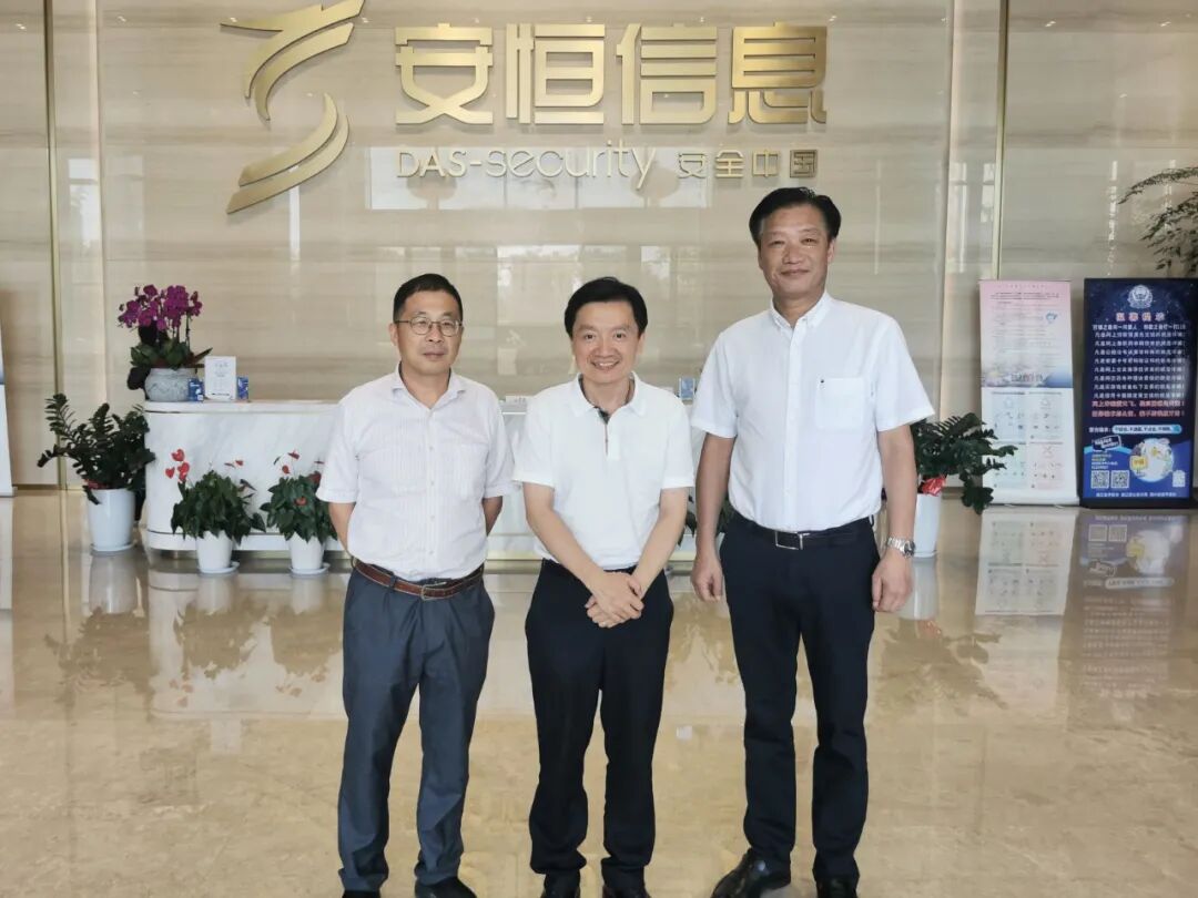 安恒信息董事长范渊(中)与协会副理事长兼秘书长应春生(右)、协会副秘书长李林(左)合影