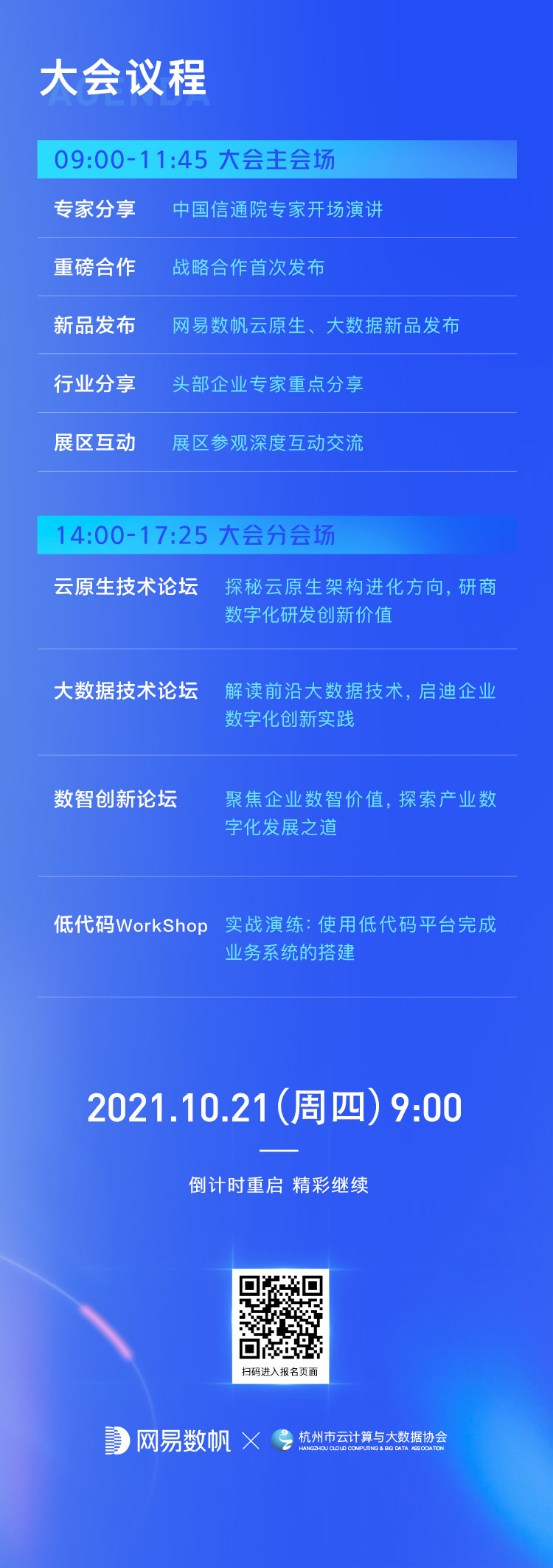 10月21日,杭州市云计算与大数据协会副理事长单位——网易主办的2021“网易数字+大会”即将开幕!